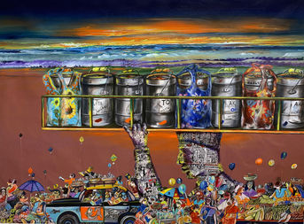 This artwork celebrates the iconic Mumbai Dabbawala, a cultural landmark of the city, capturing the spirit, rhythm, and resilience of this unique food delivery system often studied worldwide.