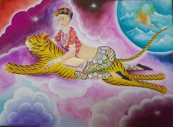 Original painting: This fantasy contemporary Kalighat patachitra inspired by Frida Kahlo is one of a kind! The artist Bhaskar Chitrakar has adhered to the medium and brushwork of old Kalighat paintings. But the theme is his own.
