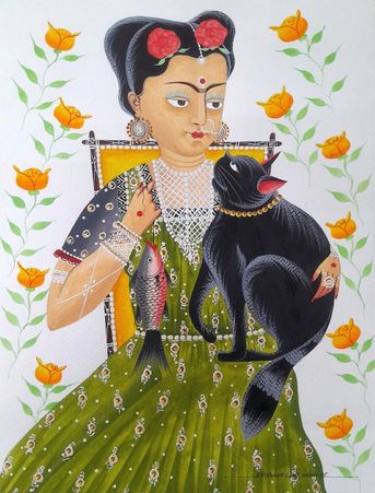 Bhaskar Chitrakar is a Kalighat 'patua' who has reinvented the form to create quirky, detailed, and contemporary Kalighats. This piece, inspired by Frida Kahlo, portrays her as a strong, brave woman of Bengal.