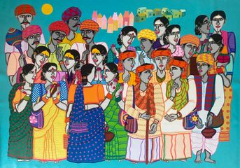 ‘Journey of Hopes and Wishes’ depicts a vibrant gathering of people from diverse walks of life and faiths, united in their pursuit of spiritual journeys.