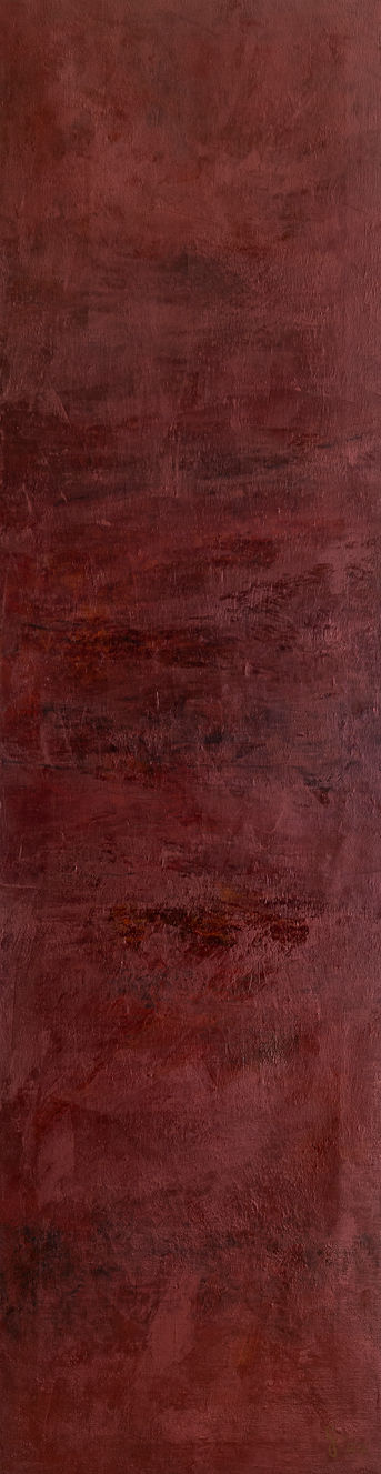A rich abstract composition rendered in deep burgundy and earthy tones, creating a warm, meditative atmosphere. Subtle textures and layered brushwork add depth, inviting quiet reflection and an intimate visual experience.