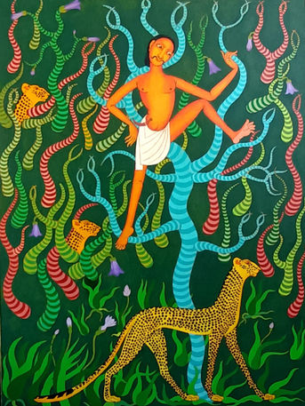 A quiet tension between hunter and cheetah— one poised above, the other below, while two shadows stir in the forest. In that breathless stillness before the hunt, only one will endure— yet silence keeps the answer untold.