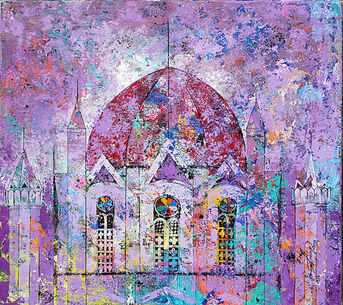 The buildings stand as silent spectators, holding within them the life and pulse of the city. In this scene, the light dances across their surfaces, revealing how the same illumination transforms each detail — windows, doors, and delicate wall motifs catch the light differently, each casting its own distinct mood. The painting captures this quiet dialogue between structure and sunlight, where every element tells a silent story.